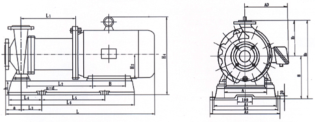 型號 | A | AD | B | L | L1 | H1 | H2 | a | A1 | A2 | A3 | H | H3 | H4 | L2 | L3 | L4 | L5 | L6 | h | n-d |
