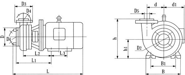規(guī)格型號 | L | L1 | L2 | L3 | D | D1 | D2 | D3 | D4 | D5 | B | B1 | d | d1 | h | h1 | 地腳螺栓 |